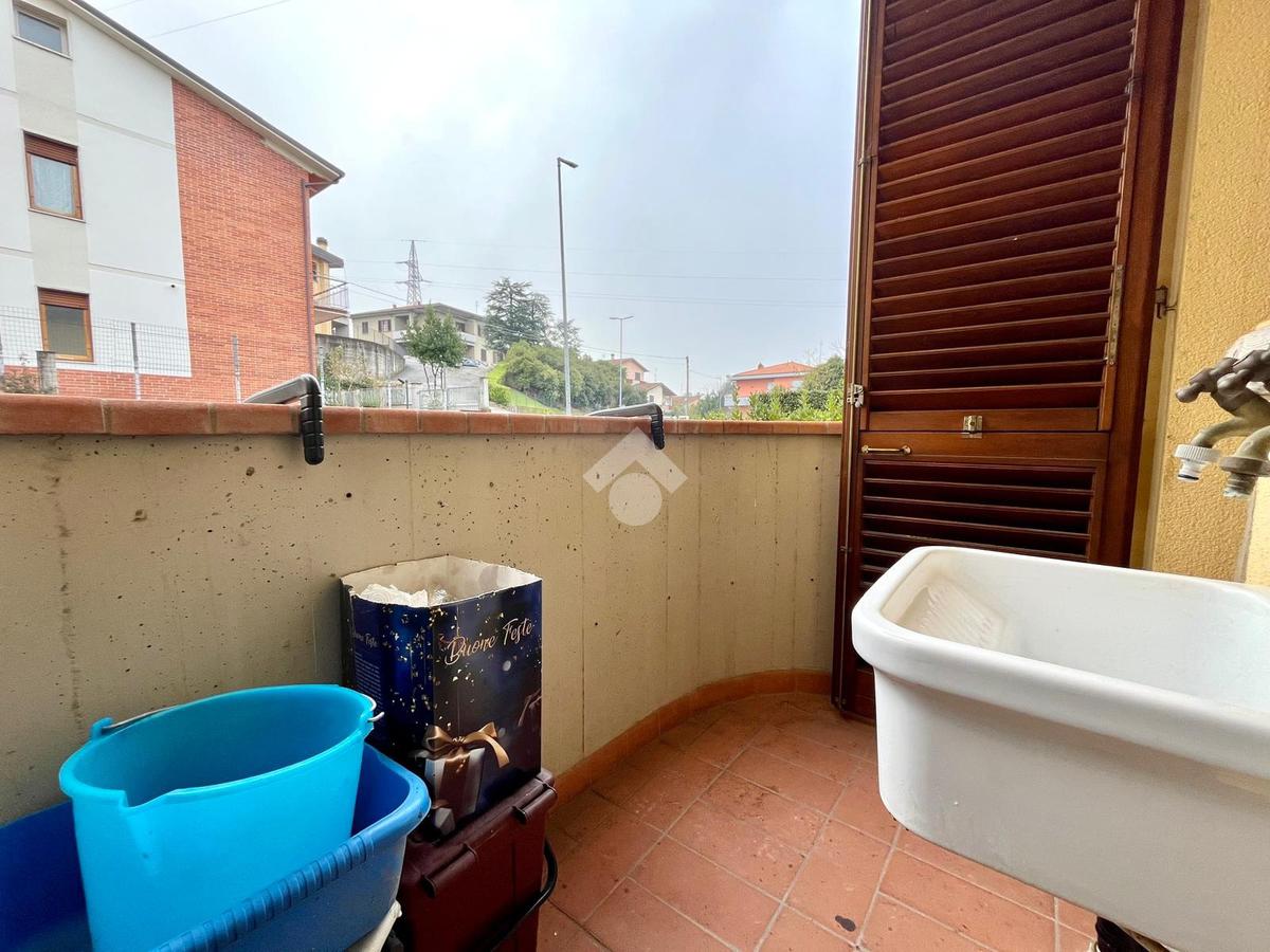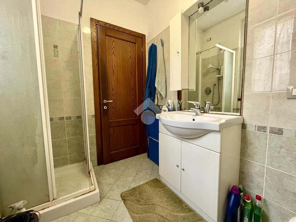 Il disimpegno ci porta alla camera matrimoniale con balcone dedicato e al bagno finestrato con doccia.