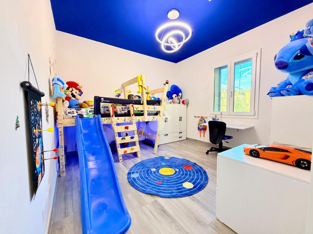 Tramite scala a vista arriviamo nella zona notte composta da due camere doppie, bagno con doccia e camera matrimoniale con grande bagno e due cabine armadio.